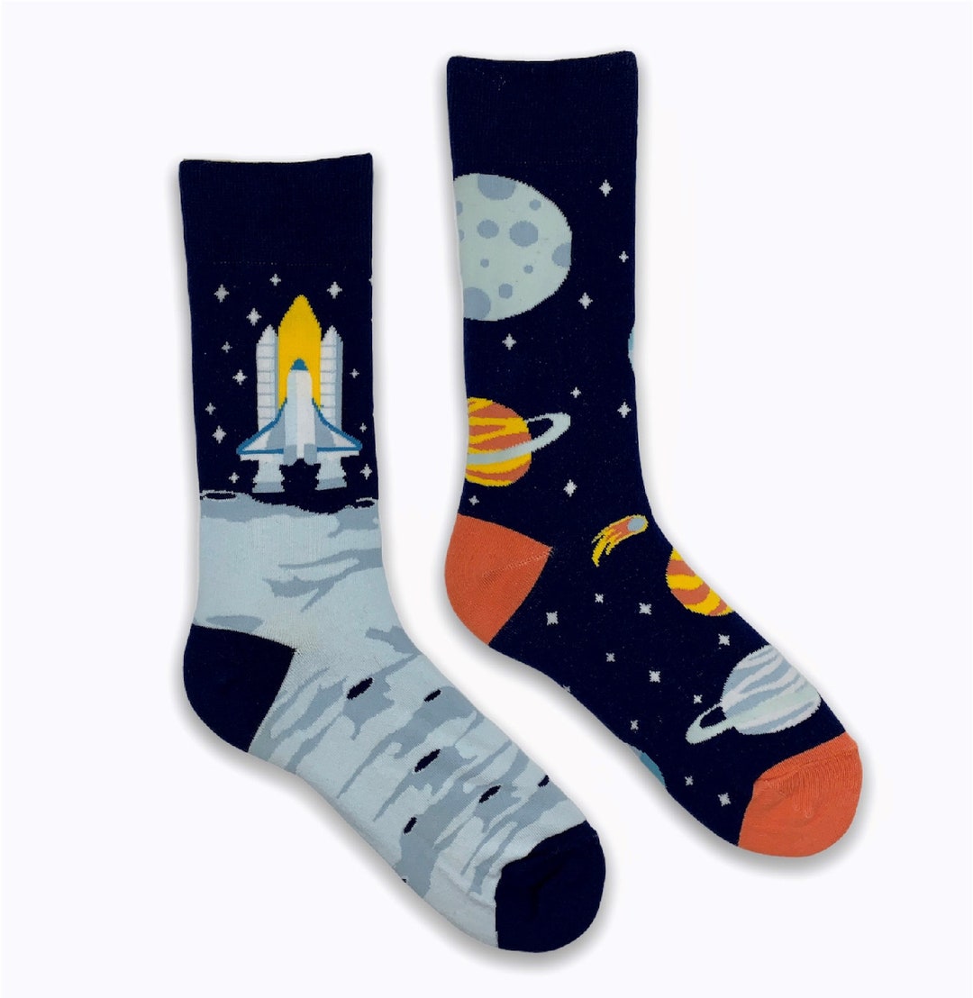 Mismatched Space Socks Happy Space Socks Space Gift Unisex Etsy De